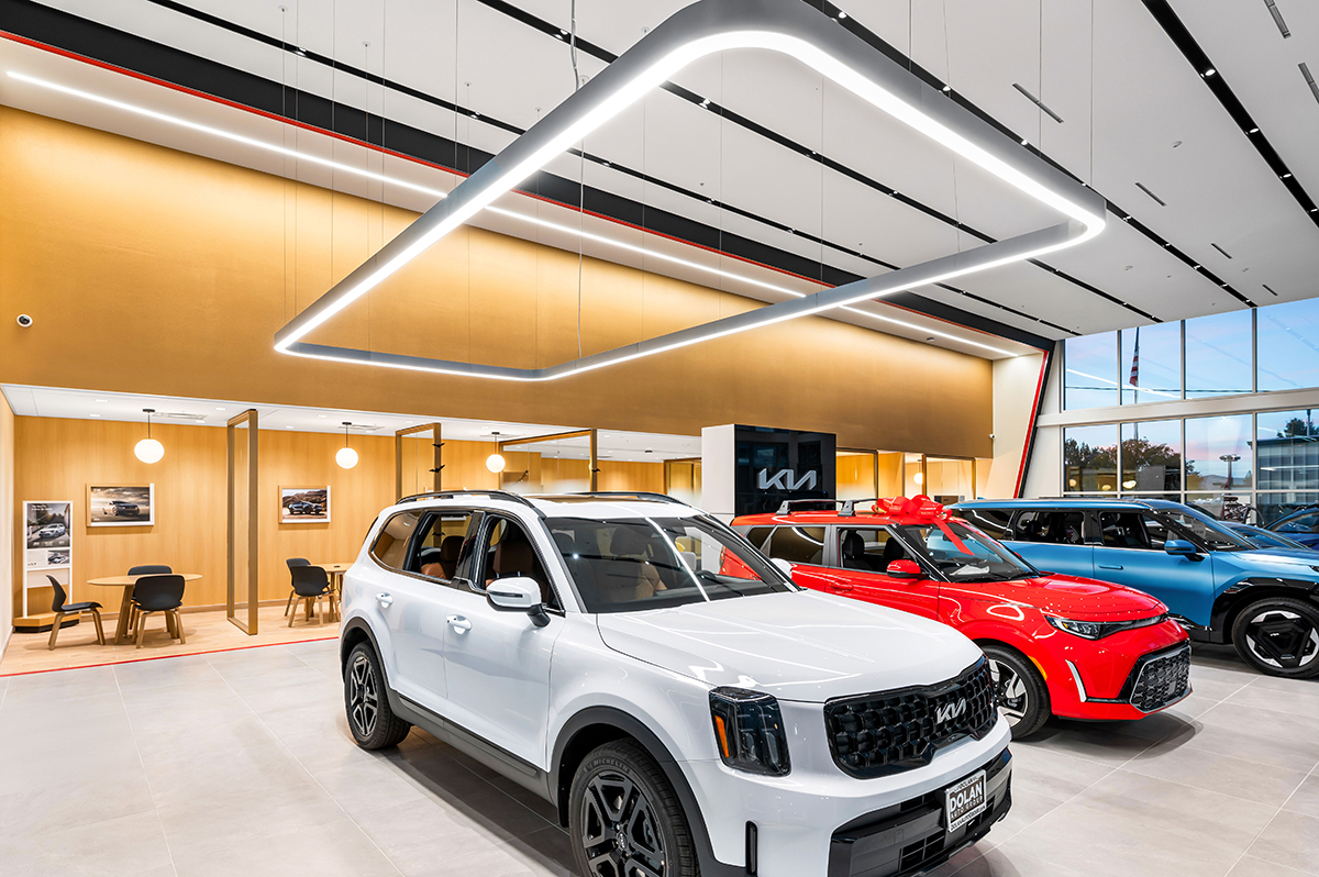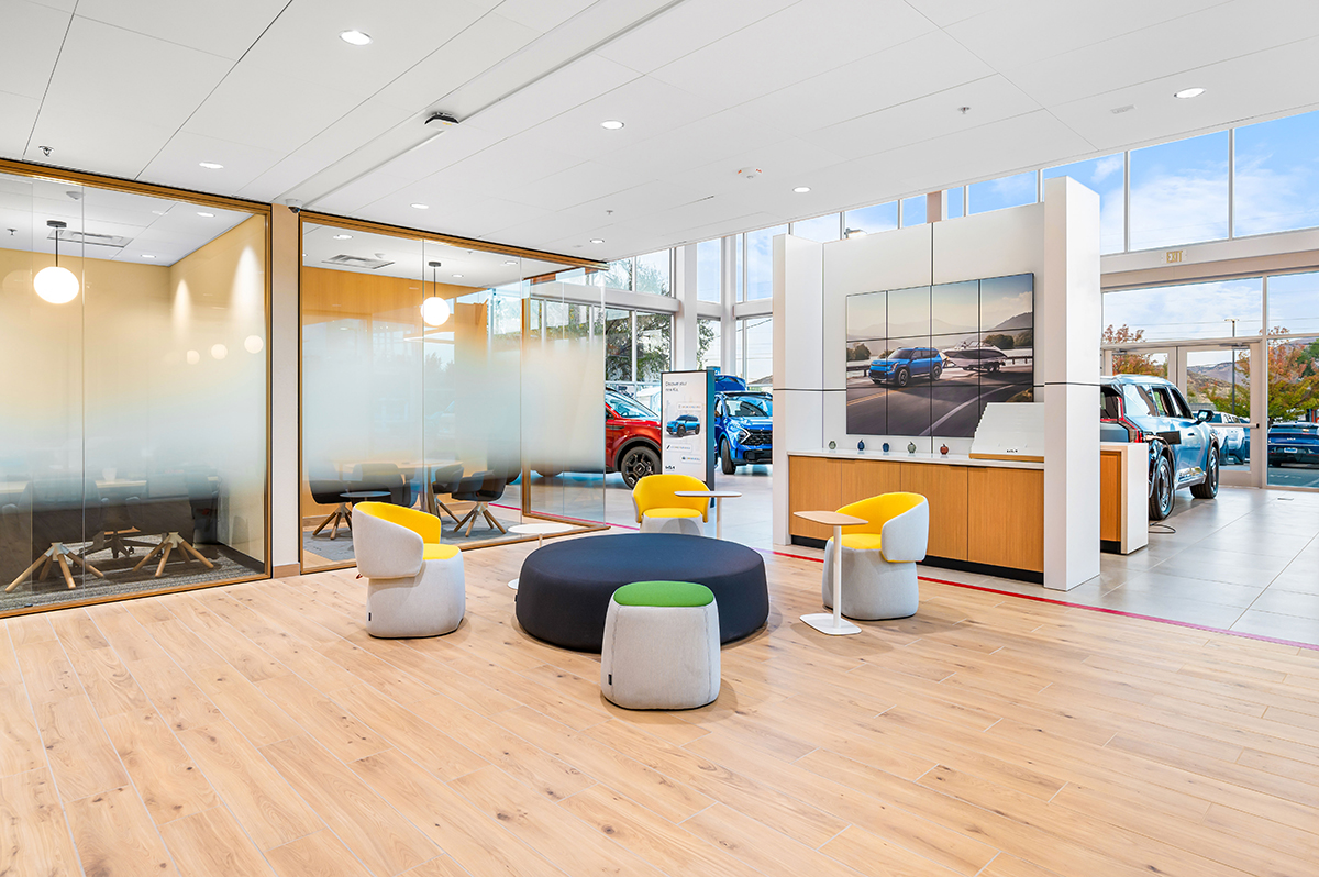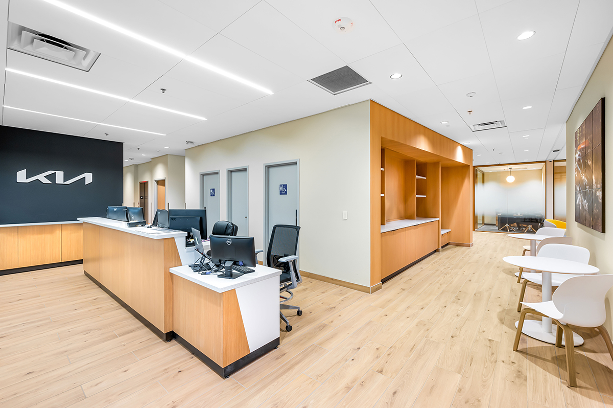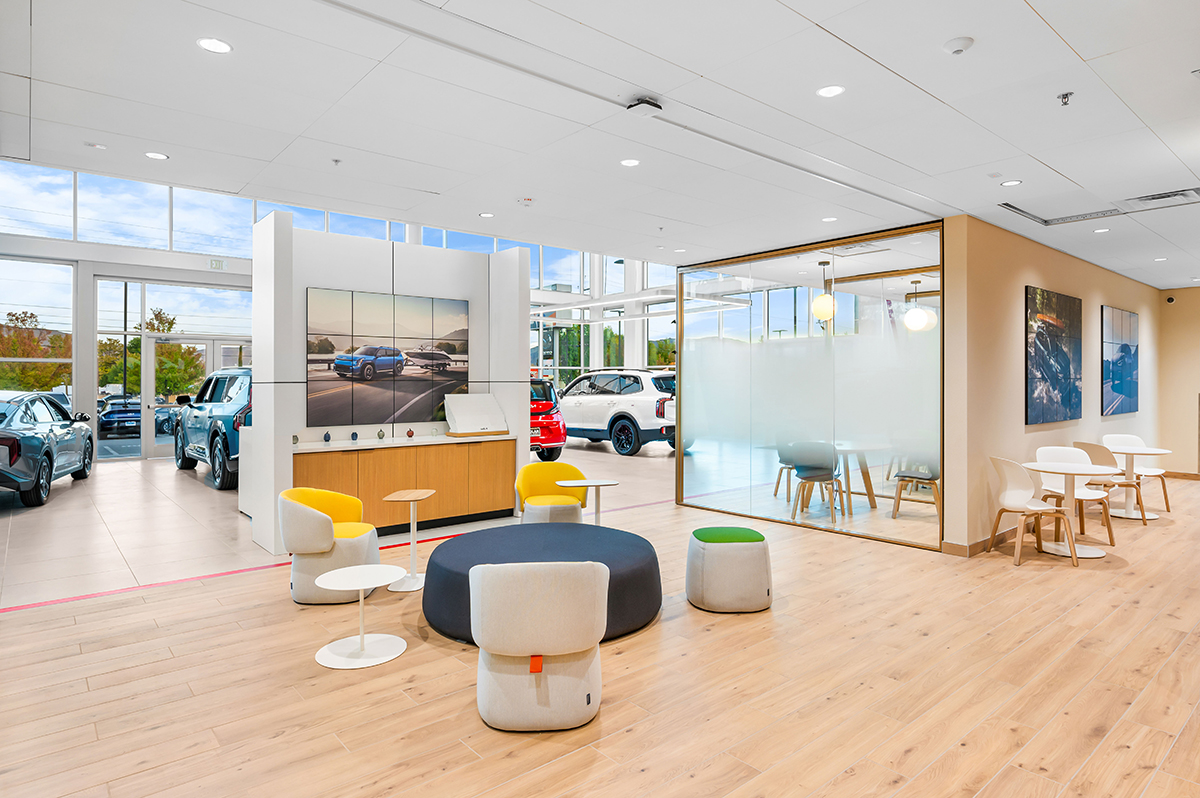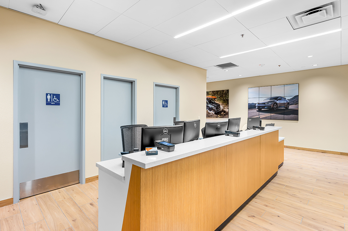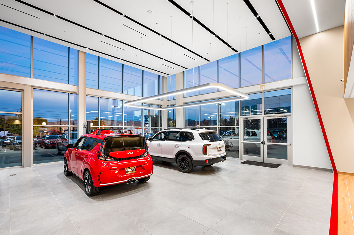 The Tom Dolan Reno KIA Rebrand and Remodel is the 9,000 square foot remodel of the KIA showroom. The scope of work includes adding new flooring, wall and storefront systems, reconfigured ceilings, lighting, furniture and KIA branded fixtures. The new finishes and fixtures will extend into the existing restrooms and service write up areas.