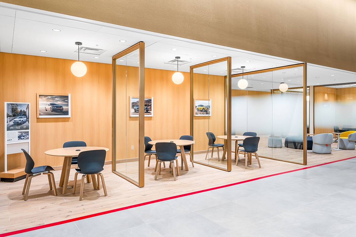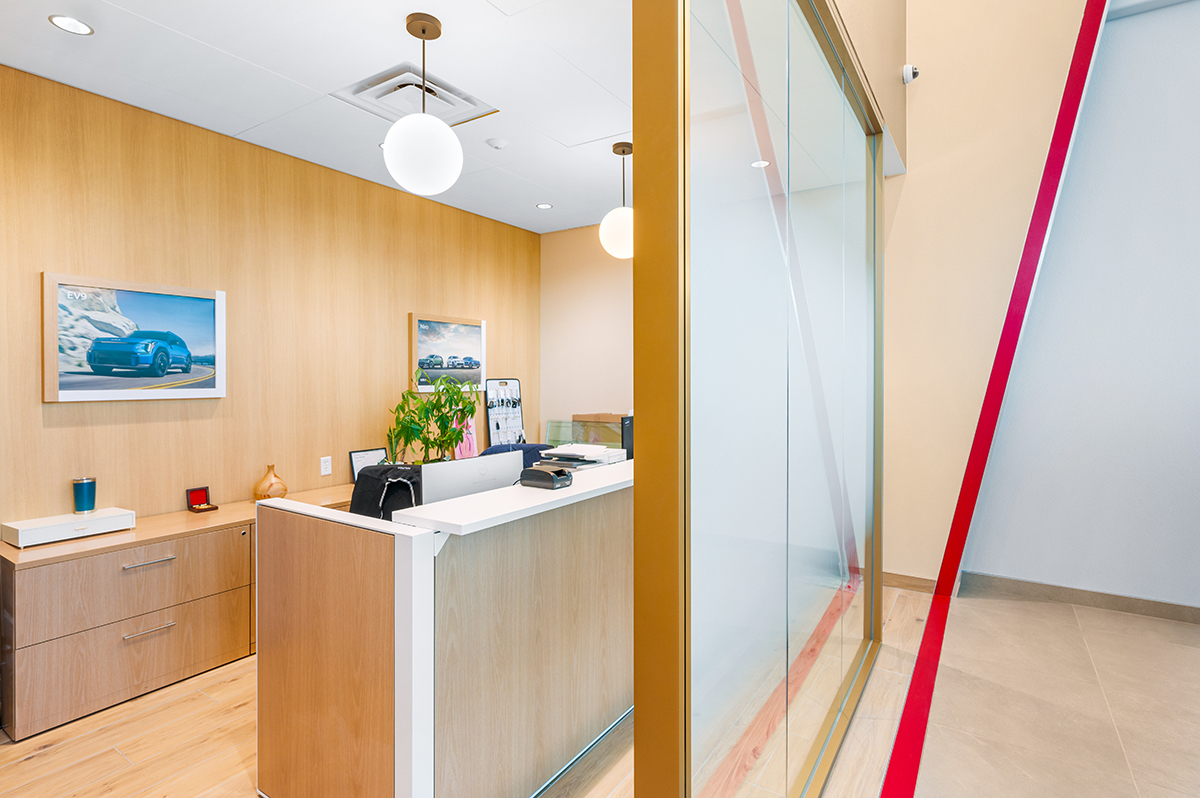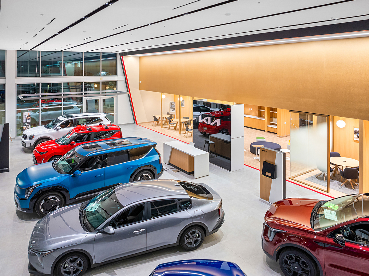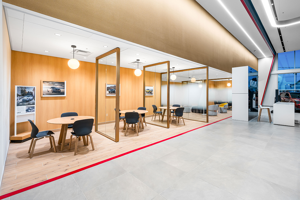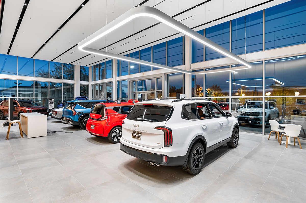 The Tom Dolan Reno KIA Rebrand and Remodel is the 9,000 square foot remodel of the KIA showroom. The scope of work includes adding new flooring, wall and storefront systems, reconfigured ceilings, lighting, furniture and KIA branded fixtures. The new finishes and fixtures will extend into the existing restrooms and service write up areas.