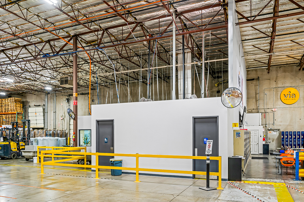 BLC Builders completed a 3,700 SF office expansion and interior improvements for Via Seating while maintaining full operations within an active, fully staffed warehouse environment. The project included upgrades to employee restrooms and the breakroom, with new flooring, paint, lighting, restroom partitions, and fixture replacements to refresh and modernize key employee spaces.